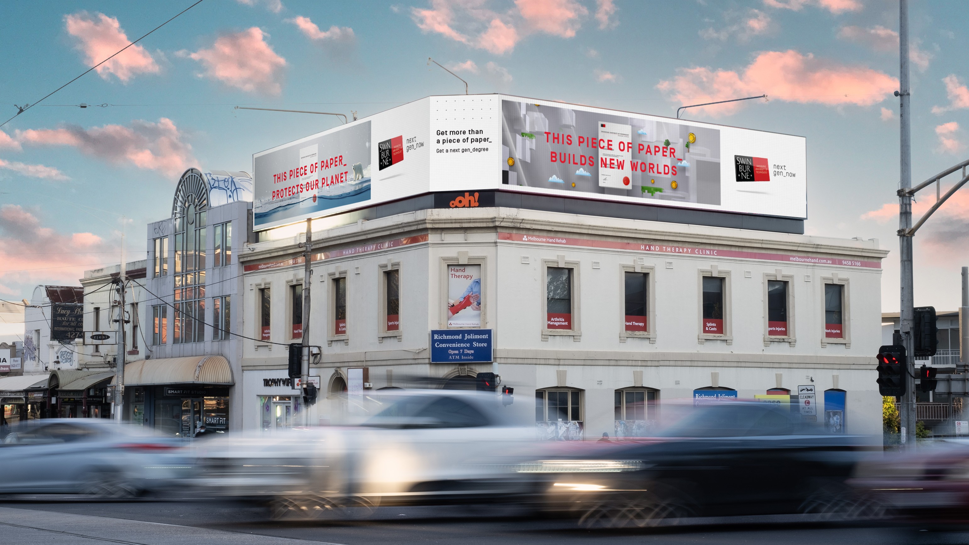 Using provocative headlines and graphic treatments, these degrees transform both themselves and the world around them. This allowed Swinburne to own the university space around employability and to carve out a visual language that was truly thier own.